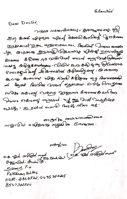 Dear Doctor, I am writing this letter with joy and thanks. When you told me that the root cause of my hearing problem was my continuous sneezing, I took your medicine without any hope. I was suffering from this problem for the last 14 years and was treated by many experts without any benefit. Within one week of your treatment I felt much improvement and in one month my sneezing stopped completely. Now I can hear properly.