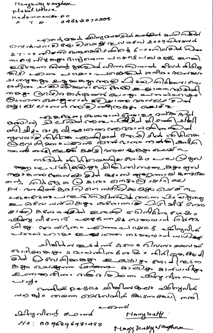 My son Shibu was working in a construction company in Muscat as Welder. On 27th Dec 2009, he fell down from the 6th floor of a building. Fortunately he fell on a big pileof loose soil and escaped death. But his body was full of bruises and sprains. He was bedridden and was even unable to go to toilet hismself. He was hospitalized in Muscat for one month. But he was still unable to walk. The company offered to give him the job back if he returned well within 6 months.