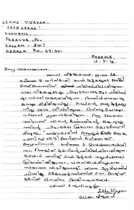 I am a house wife, aged 62. For the last 8 years I was being treated for ‘wearing of knee joints’. No treatment helped. Both the knees were swollen and I could not walk an inch. Then I happened to hear about Ajith Kumar of Chackalayil Ayurveda Hospital through a friend of my husband. For the last 6 months, I am under his treatment. Now I am able to use my knees properly. And I can walk without help. I appreciate Ajith Kumar’s treatment.